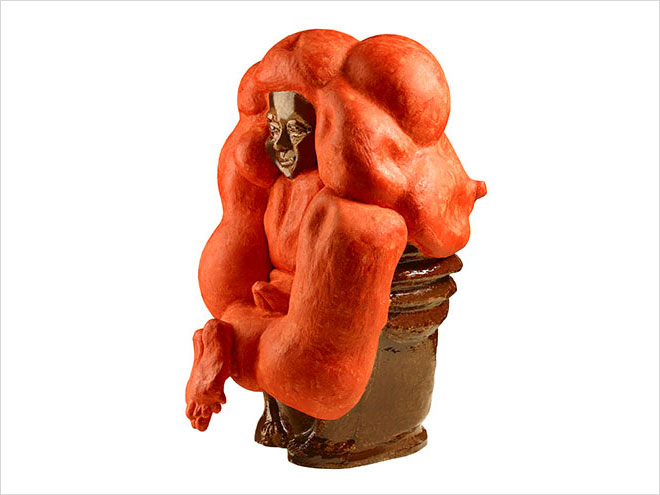 Lavoro con la ceramica più o meno da vent’anni e ancor oggi non ho il coraggio di dichiararmi ceramista. Il ceramista svolge un mestiere unico che richiede tempo, studio, esperienza e molta pazienza. Invece io impiego le tecniche basilari della ceramica e con i ceramisti di mestiere condivido la passione per il materiale, perché la ceramica è una passione. Il lavoro manuale è per me un piacere: modello piccoli oggetti con i quali realizzo grandi assemblaggi e li cucio su stoffe, che in questo caso sono camicie di forza. Il mio rapporto con la ceramica è molto intimo e si svolge dentro la mia casa, su un tavolo da disegno sempre molto pulito e ordinato, nonostante l’argilla sia un materiale che non favorisce queste condizioni. In un sacchetto di creta è contenuto per me tutto il mondo visibile e invisibile e questo mi permette di non dover uscire di casa per cercare gli oggetti del mondo. Alla ceramica concedo tutta la carica concettuale del mio lavoro che ha come tema il femminile. E allora posso dire che la mia ceramica è donna.